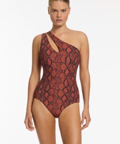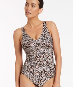 Jets Women’s One Piece Swim Animale D_dd Trim One Piece – Cream