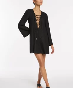 Jets Women’s Resortwear Joali Tie Front Mini Coverup – Black
