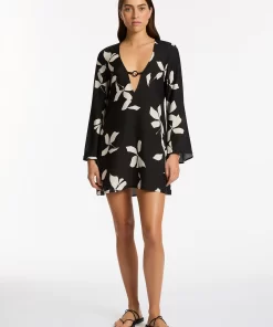 Jets Women’s Resortwear Elora Bloom Mini Kaftan – Black | Black