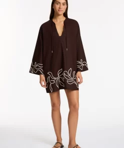 Jets Women’s Resortwear Dahlia Palm Embroidered Mini Kaftan – Chocolate | Chocolate