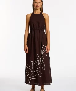 Jets Women’s Resortwear Dahlia Palm Embroidered Maxi Dress – Chocolate | Chocolate