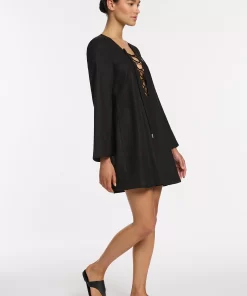 Jets Women’s Resortwear Joali Tie Front Mini Coverup – Black