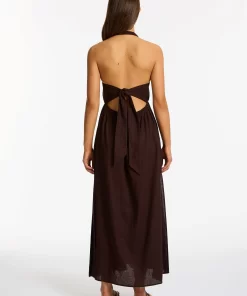 Jets Women’s Resortwear Dahlia Palm Embroidered Maxi Dress – Chocolate | Chocolate