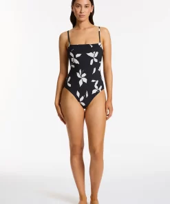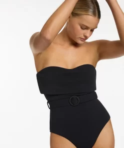 Jets Women’s One Piece Swim Isla Rib Fold Down Bandeau One Piece – Black | Black