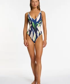 Jets Women’s One Piece Swim Acacia Plunge Underwire One Piece – Multi