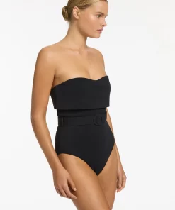 Jets Women’s One Piece Swim Isla Rib Fold Down Bandeau One Piece – Black | Black