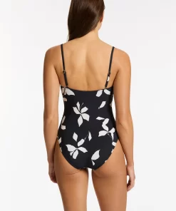 Jets Women’s One Piece Swim Elora Bloom Plunge One Piece – Black