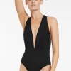 Women’s One Piece Swim Jetset E-f Clean Plunge One Piece – Black | Black