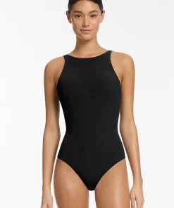 Jets Women’s One Piece Swim High Neck One Piece – Black | Black