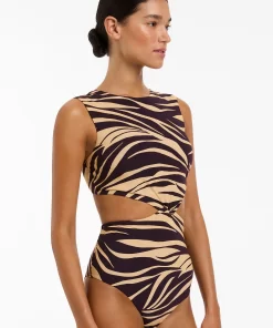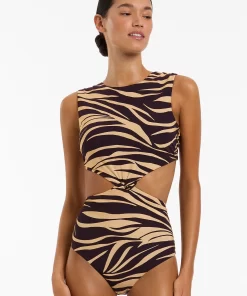 Jets Women’s One Piece Swim Fine Lines Twist Tank One Piece – Port