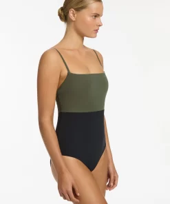 Jets Women’s One Piece Swim Versa Rib Cut Out High Neck One Piece – Black/moss | Xs & 4