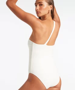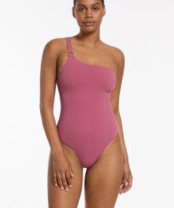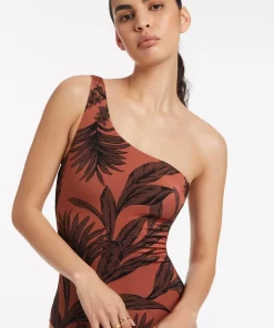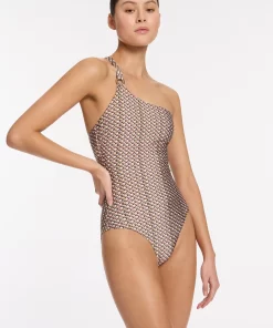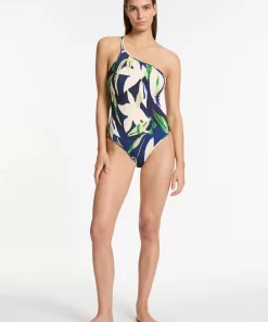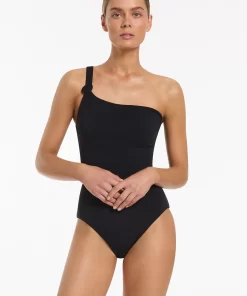 Jets Women’s One Piece Swim Lunar Stripe One Shoulder Cut Out One Piece – Black/chalk