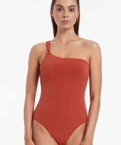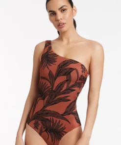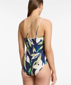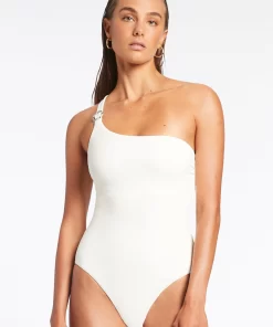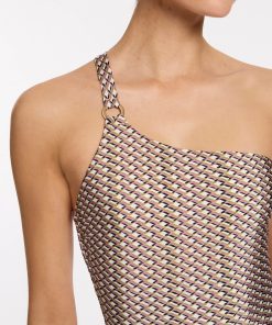 Jets Women’s One Piece Swim Lunar Stripe One Shoulder Cut Out One Piece – Black/chalk