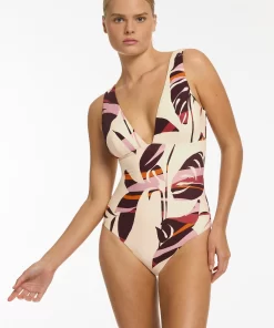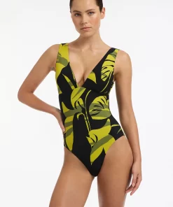 Jets Women’s One Piece Swim Infinity Plunge One Piece – Kelp