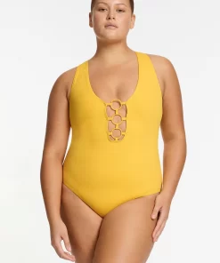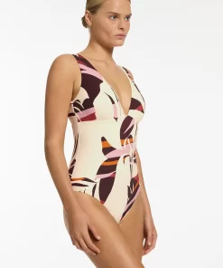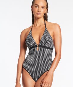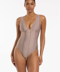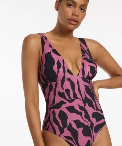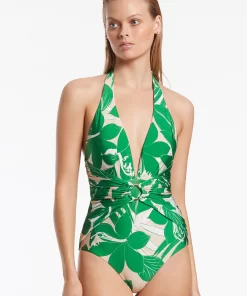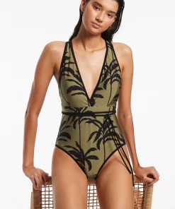 Jets Women’s One Piece Swim Infinity Plunge One Piece – Kelp