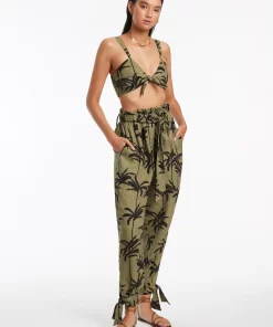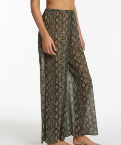 Jets Women’s Resortwear Python Crinkle Wide Leg Pant – Olive