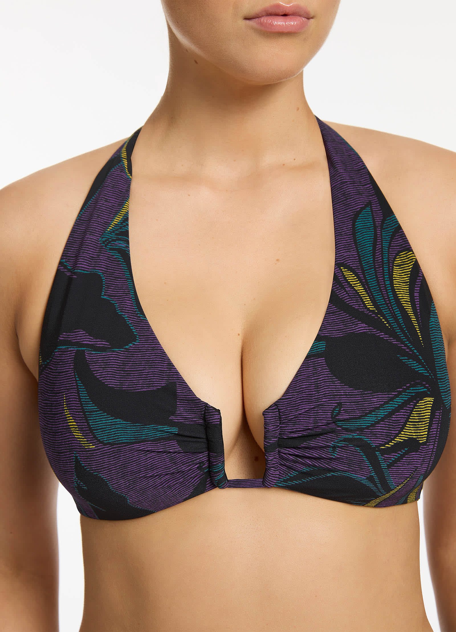 Jets Women’s Bikini Tops Midnight Tropical D-dd Wire Cut Out Top – Amethyst