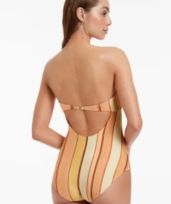 Jets Women’s Black Swimwear Fira Stripe Bandeau One Piece – Marigold