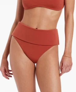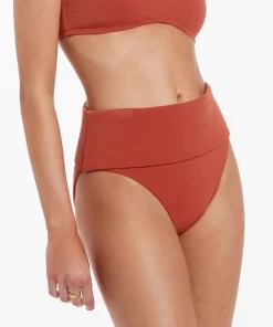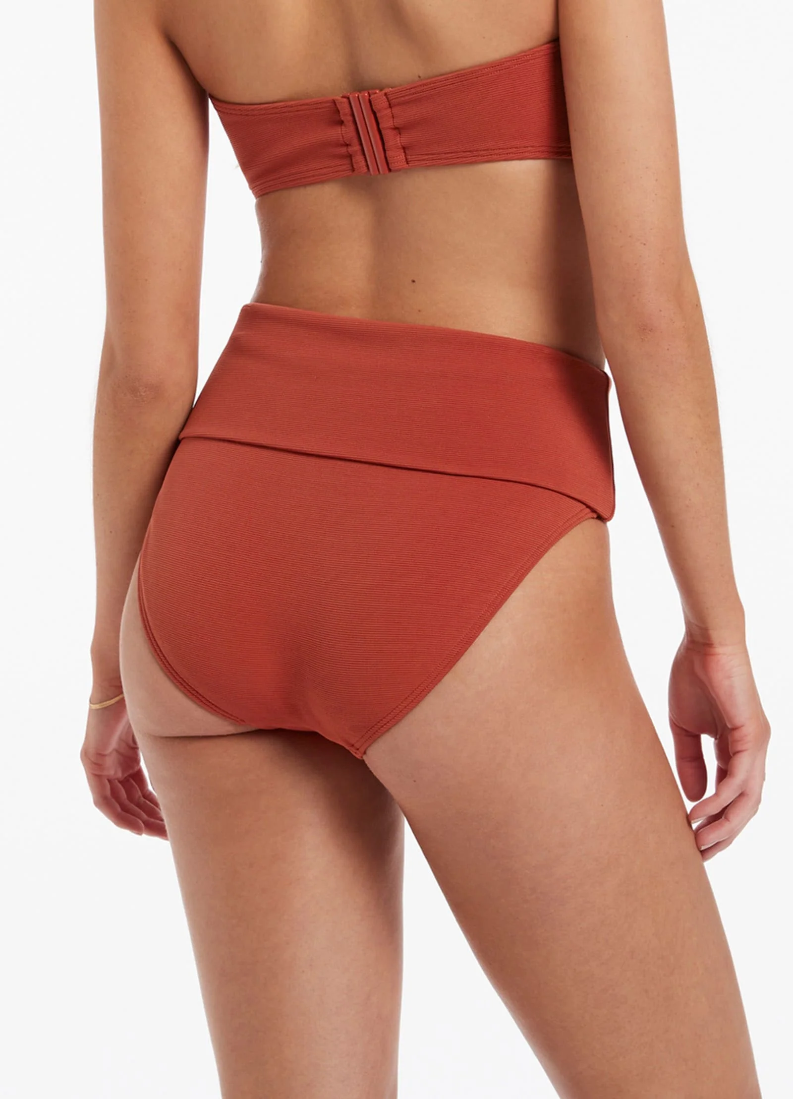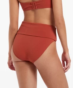 Jets Women’s Isla Rib Fold Down High Waisted Bikini Bottom – Russet