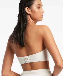 Jets Women’s Isla Rib Minimal Bandeau Bikini Top – Cream