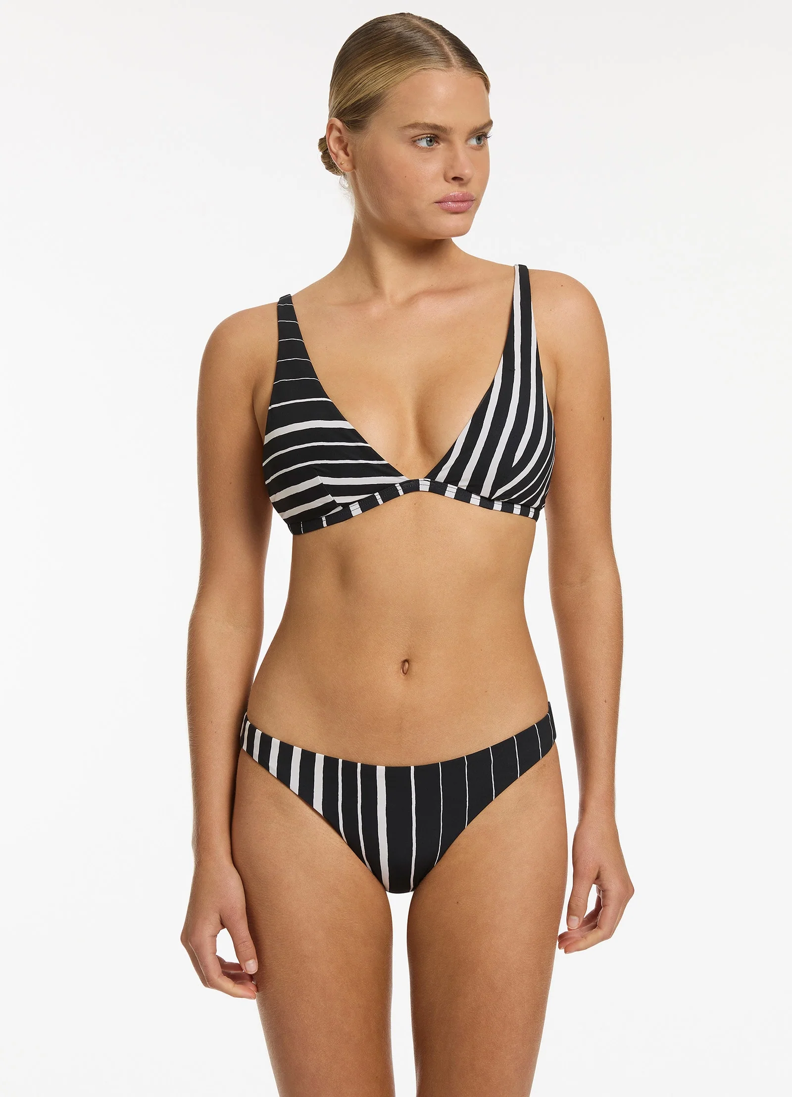 Jets Women’s Lunar Stripe Triangle Bikini Top – Black/chalk