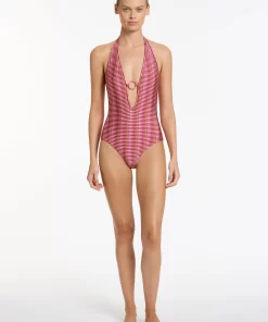 Jets Women’s One Piece Swim Alessia Geo Plunge One Piece – Peony