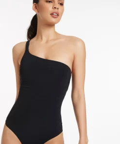 Women’s One Piece Swim Jetset One Shoulder One Piece – Black