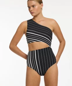 Jets Women’s One Piece Swim Lunar Stripe One Shoulder Cut Out One Piece – Black/chalk