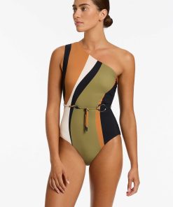 Jets Women’s One Piece Swim Tirari Nights One Shoulder One Piece – Chocolate | Chocolate