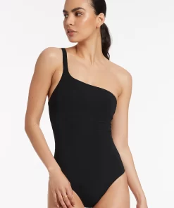 Women’s One Piece Swim Jetset One Shoulder One Piece – Black