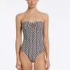 Jets Women’s One Piece Swim Lunar Stripe One Shoulder Cut Out One Piece – Black/chalk