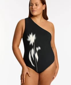 Women’s One Piece Swim Jetset One Shoulder One Piece – Black