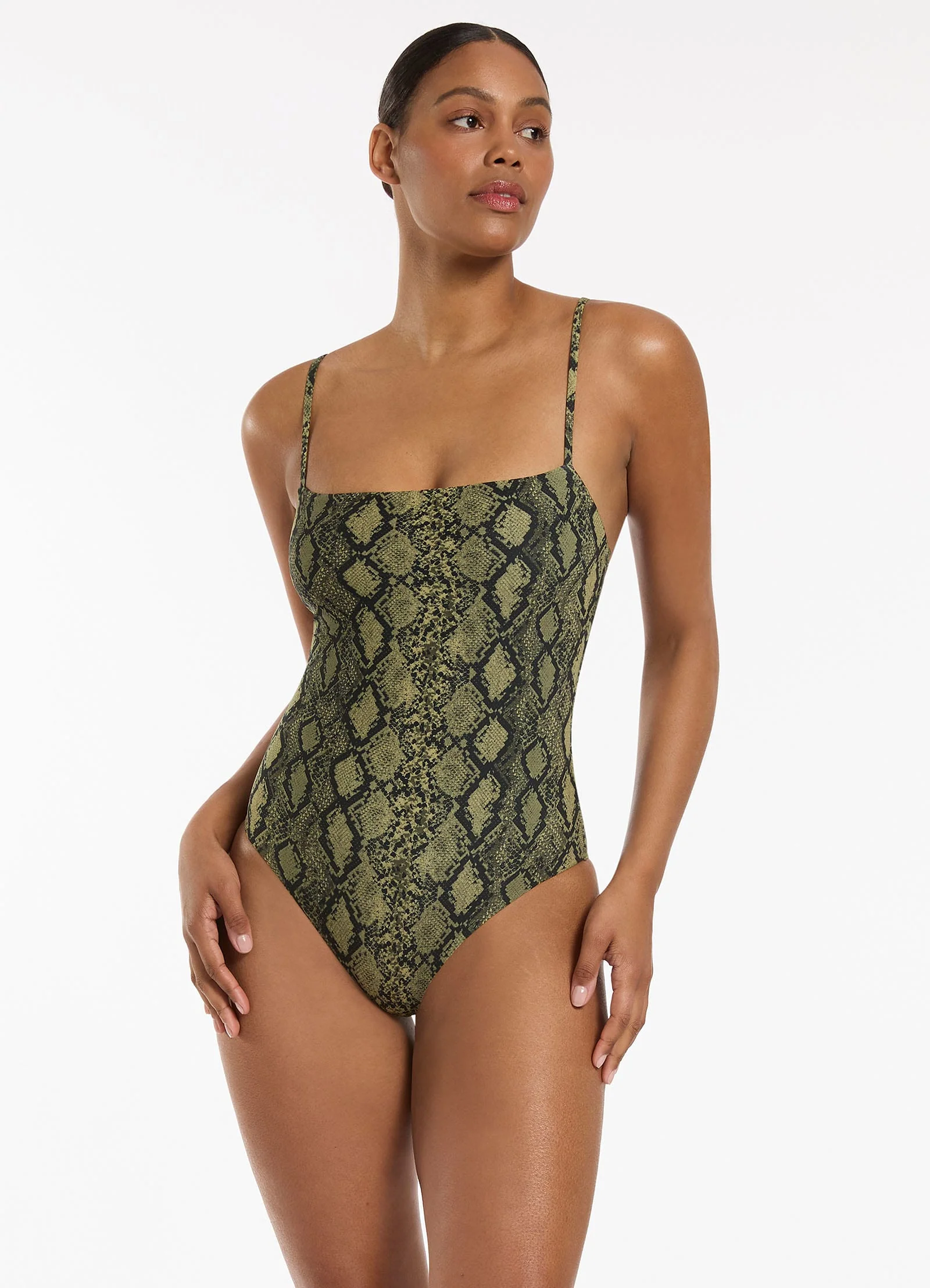 Jets Women’s One Piece Swim Python Minimal Tank One Piece – Olive