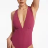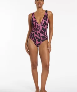 Jets Women’s One Piece Swim Sereno Plunge One Piece – Mauve