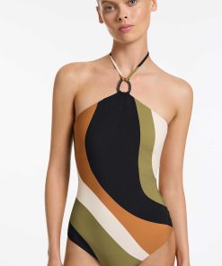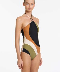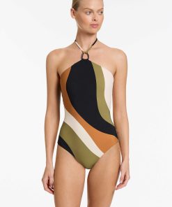Jets Women’s One Piece Swim Sorella High Neck Halter One Piece – Multi