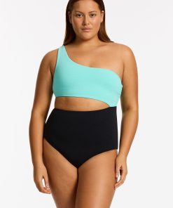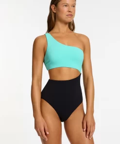 Jets Women’s One Piece Swim Versa Rib One Shoulder One Piece – Black / Dolce