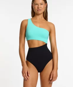 Jets Women’s One Piece Swim Lunar Stripe One Shoulder Cut Out One Piece – Black/chalk