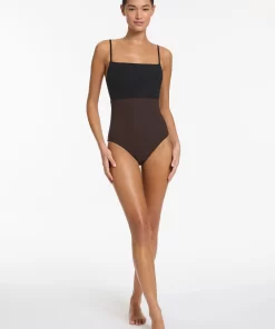 Jets Women’s One Piece Swim Versa Tank One Piece – Black/chocolate