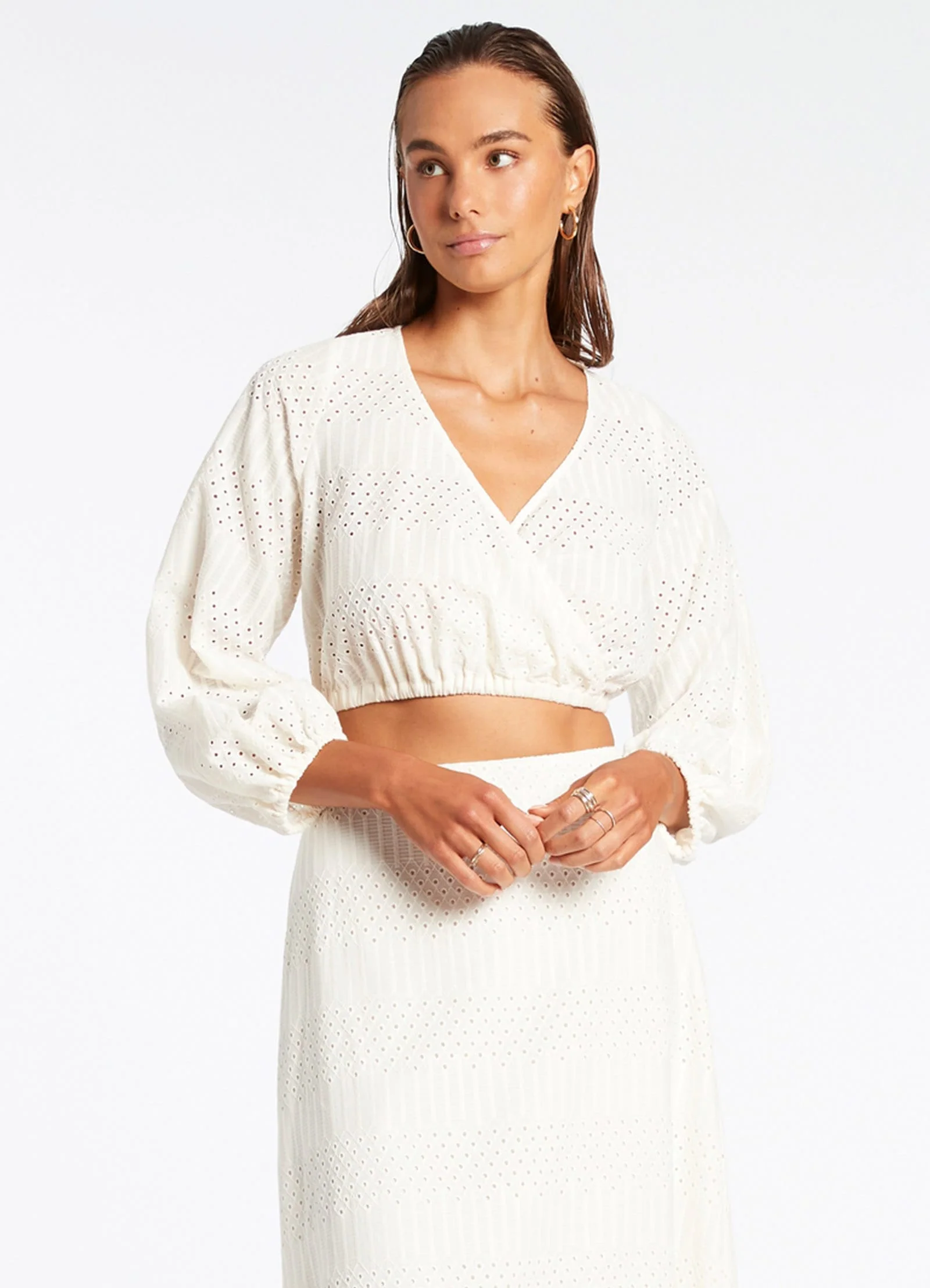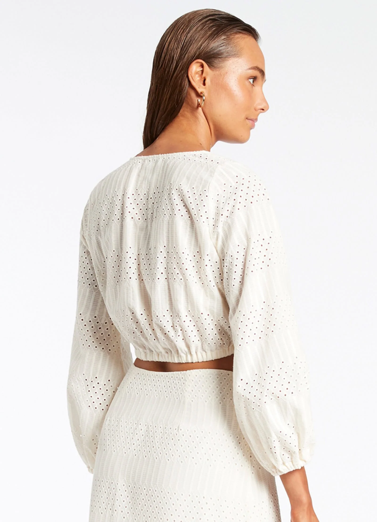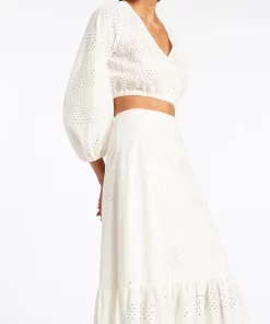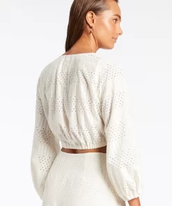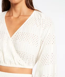 Jets Women’s Resortwear Broderie Cropped Blouse – Cream