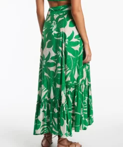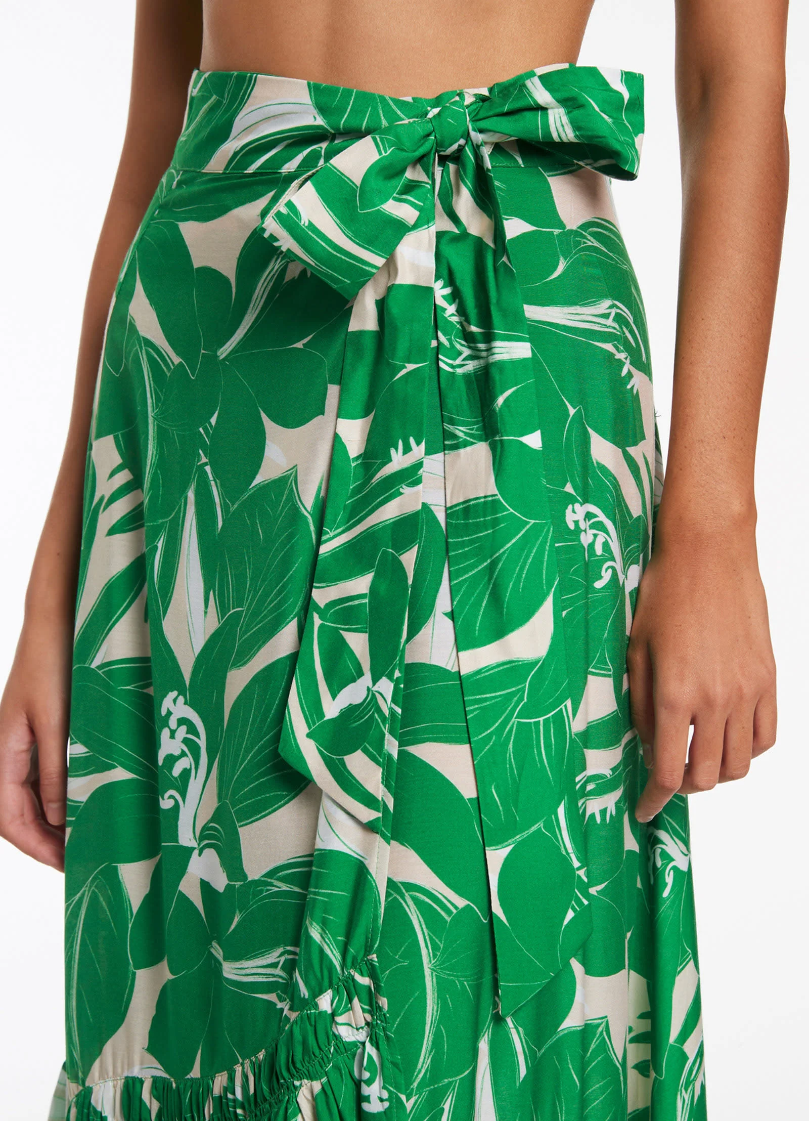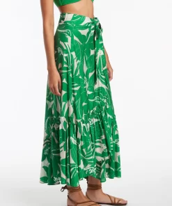 Jets Women’s Resortwear Floreale Ruffle Wrap Skirt – Green