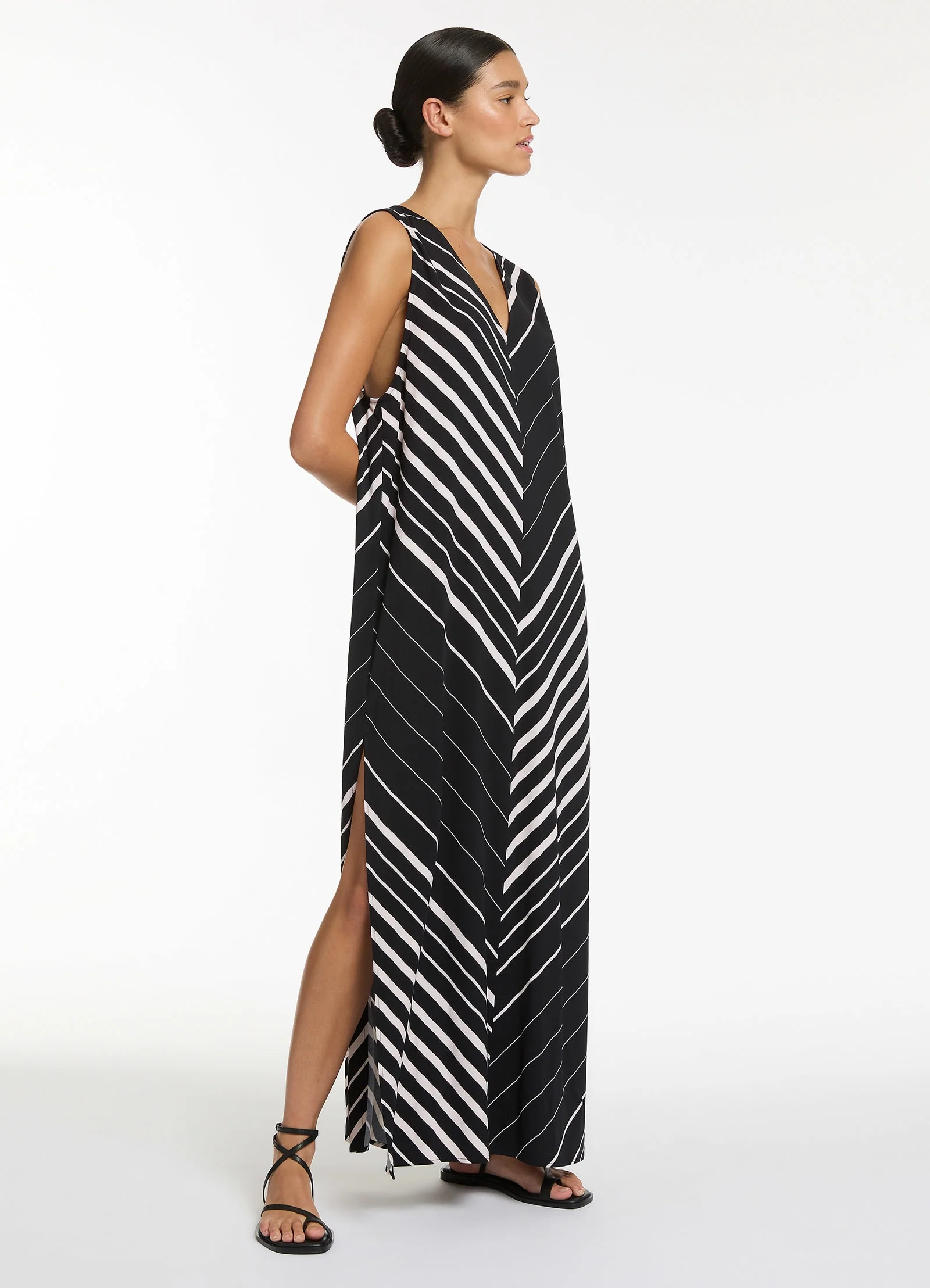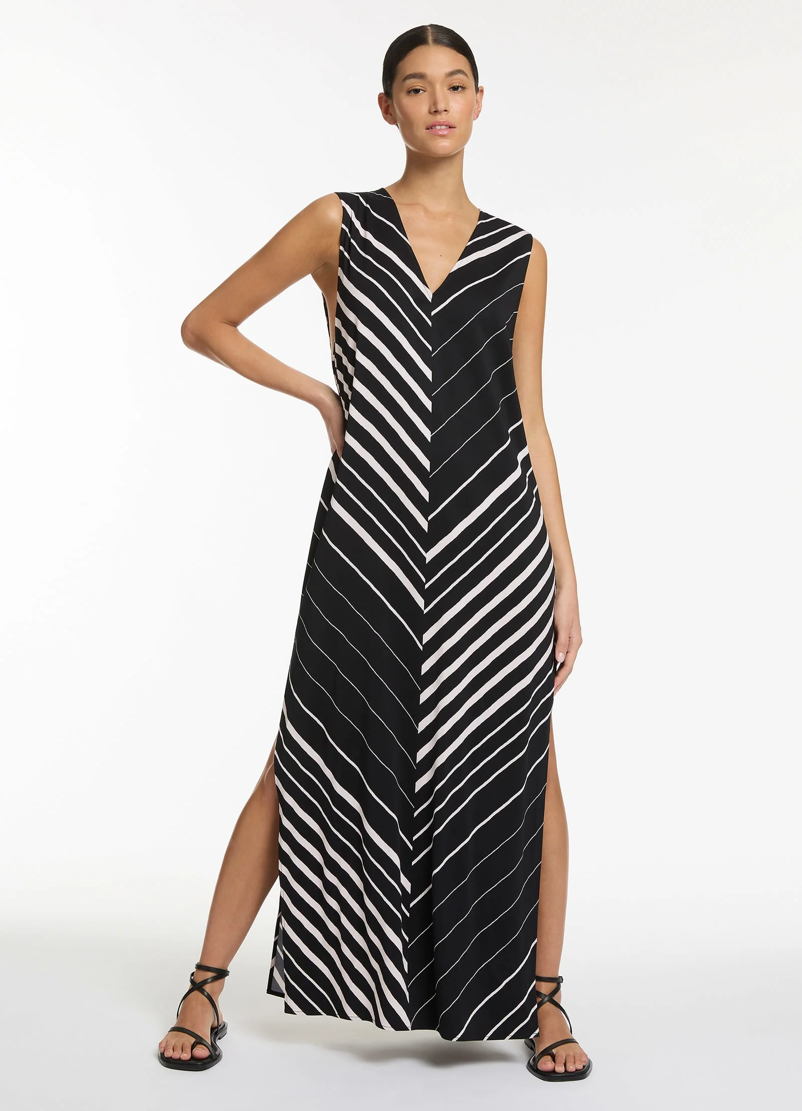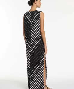 Jets Women’s Resortwear Lunar Stripe Sleeveless Maxi Kaftan – Black/chalk