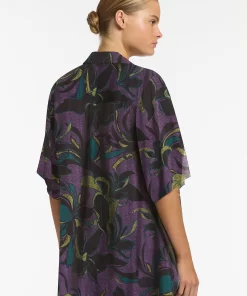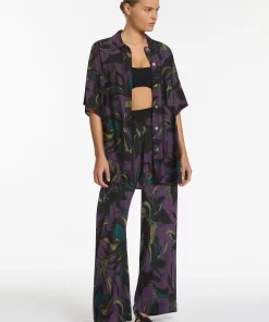 Jets Women’s Resortwear Midnight Tropical Short Sleeve Shirt – Amethyst