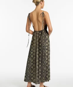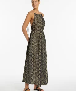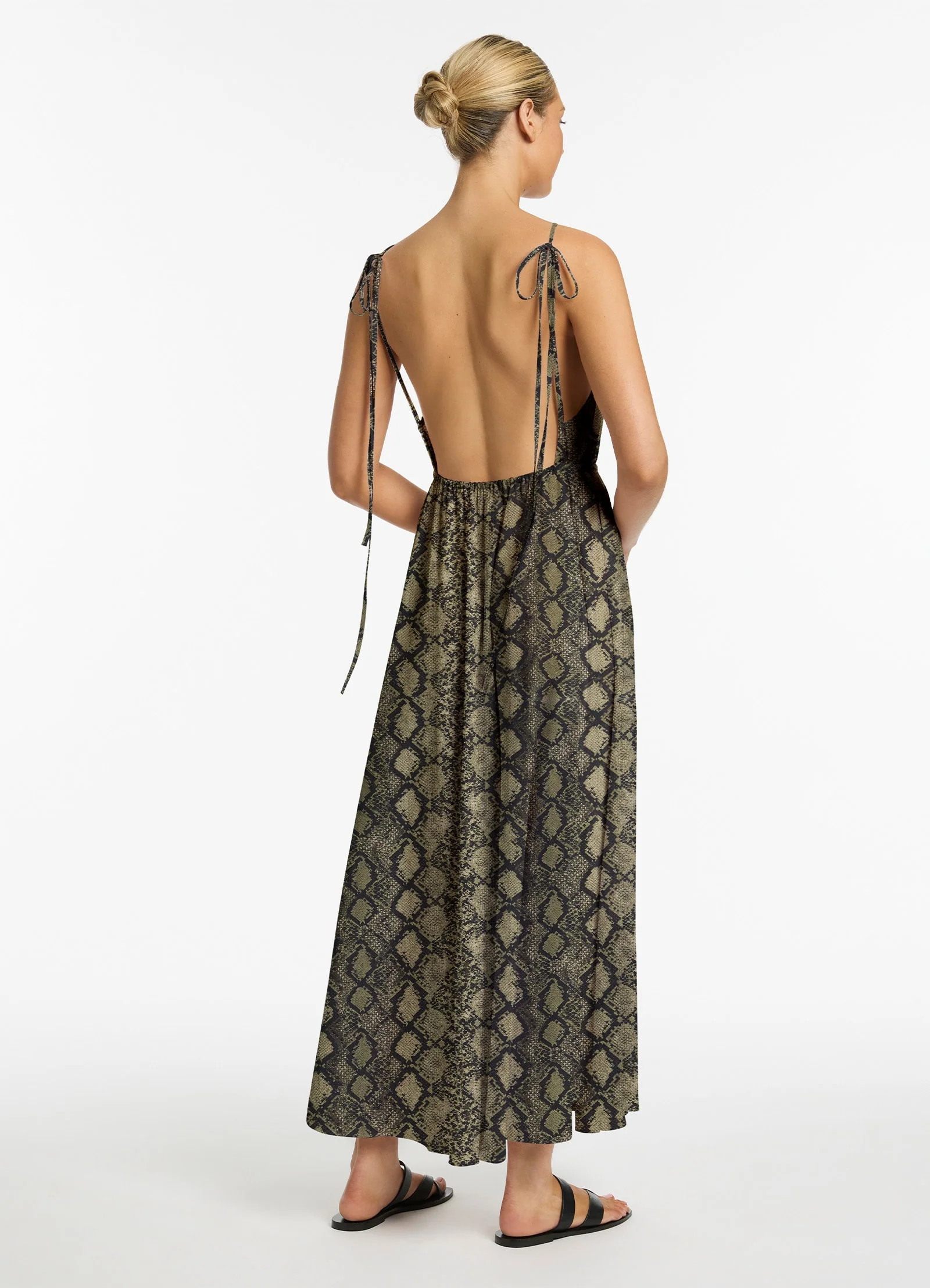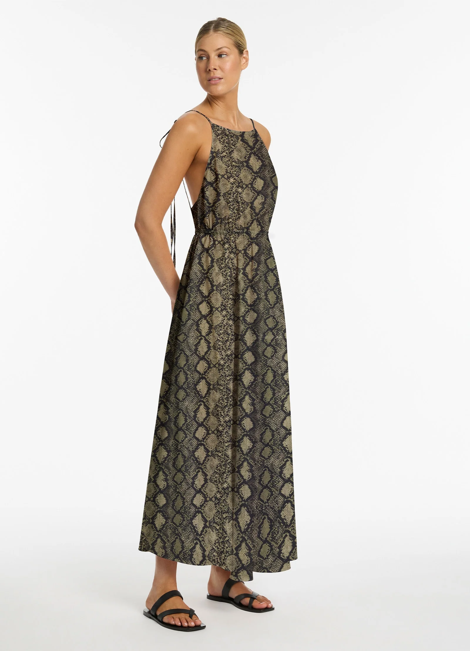 Jets Women’s Resortwear Python Backless Maxi Dress – Olive