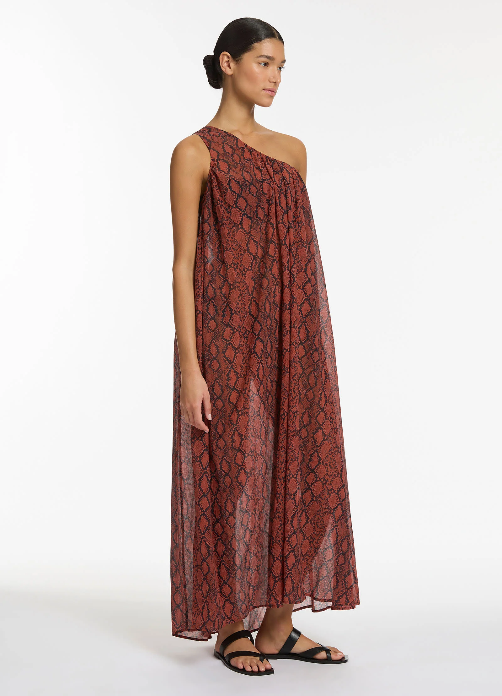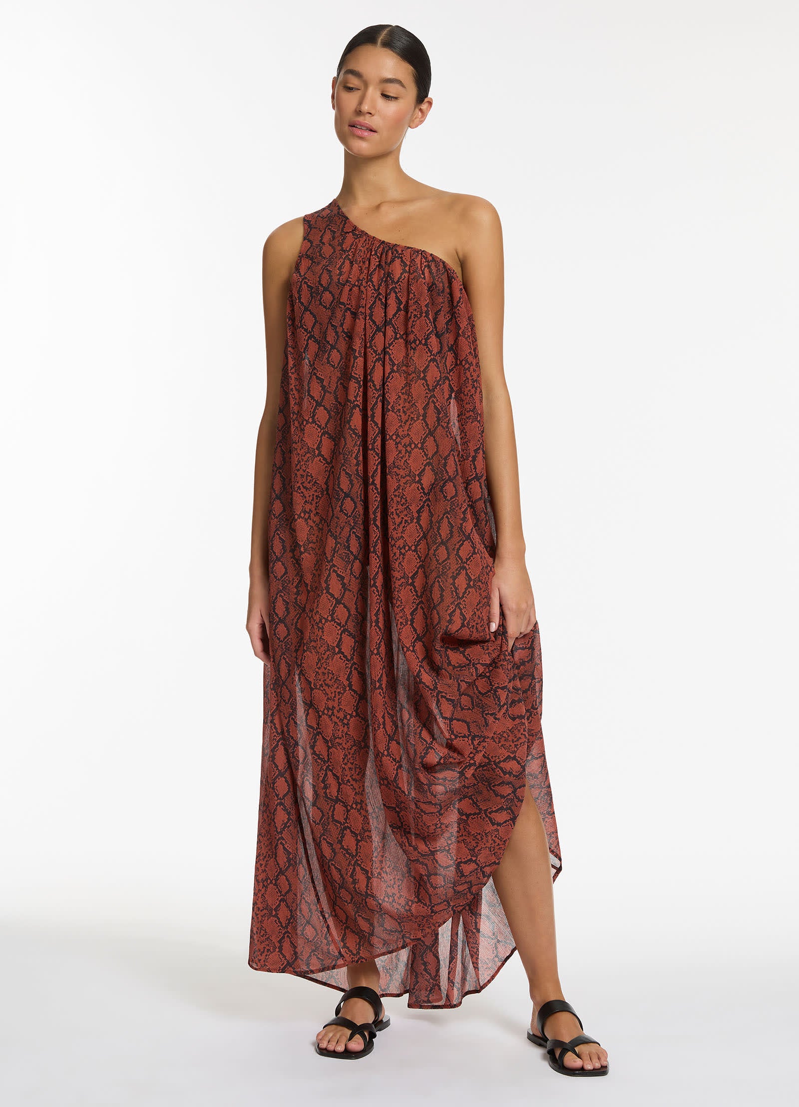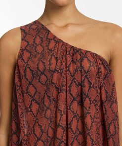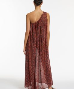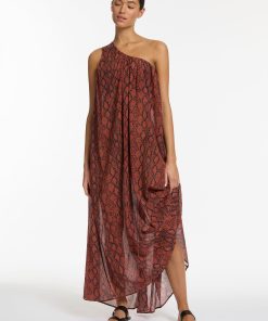 Jets Women’s Resortwear Python Crinkle One Shoulder Maxi Dress – Spice