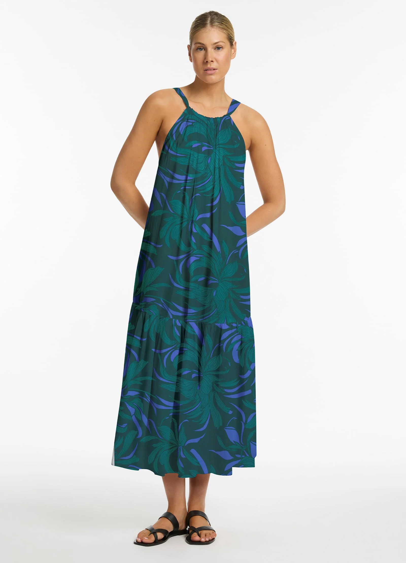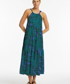 Jets Women’s Resortwear Queen Of The Night Tiered Halter Maxi Dress – Azul