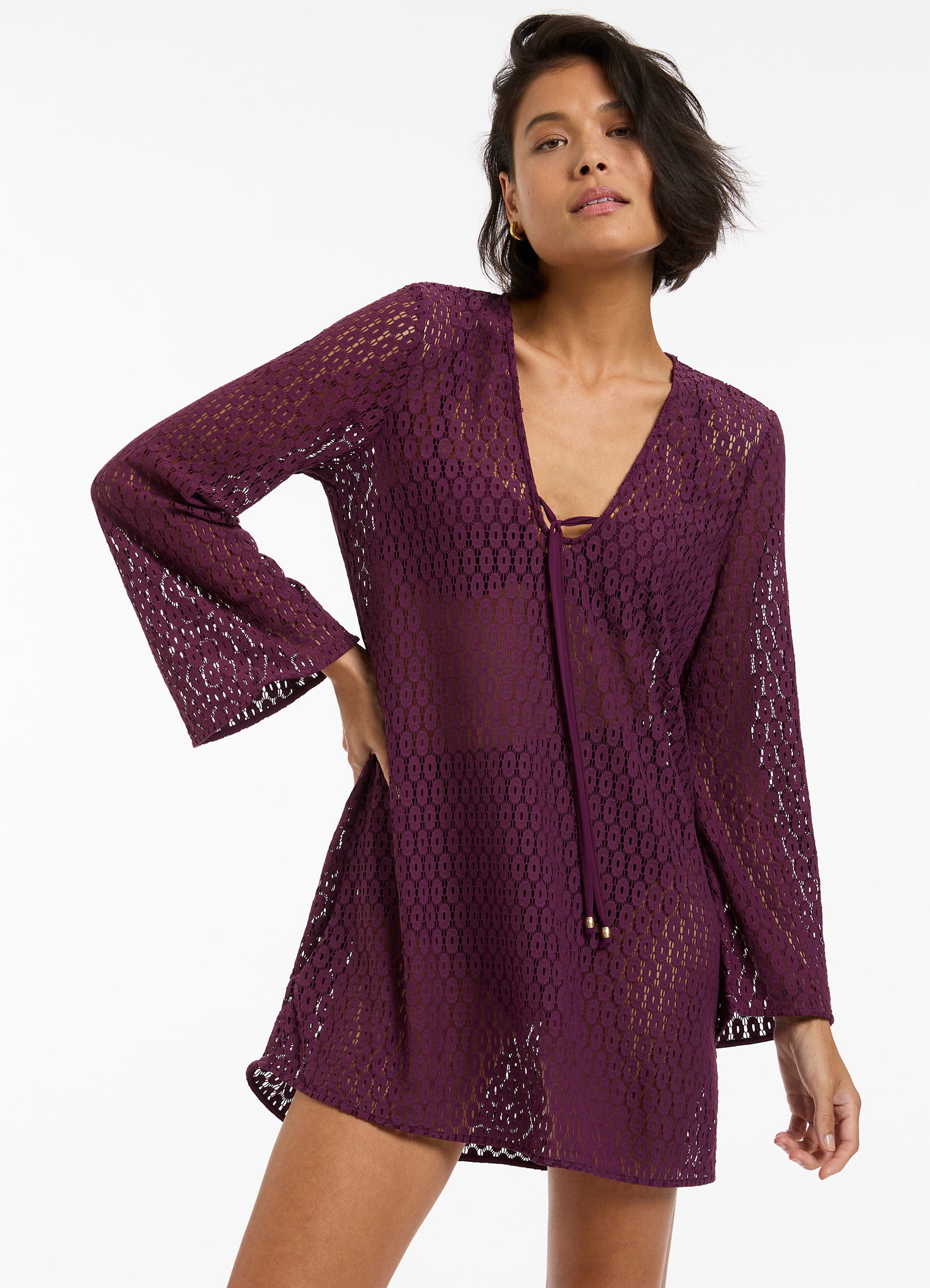 Jets Women’s Resortwear Stretch Lace Kaftan – Port
