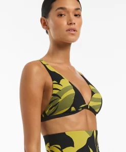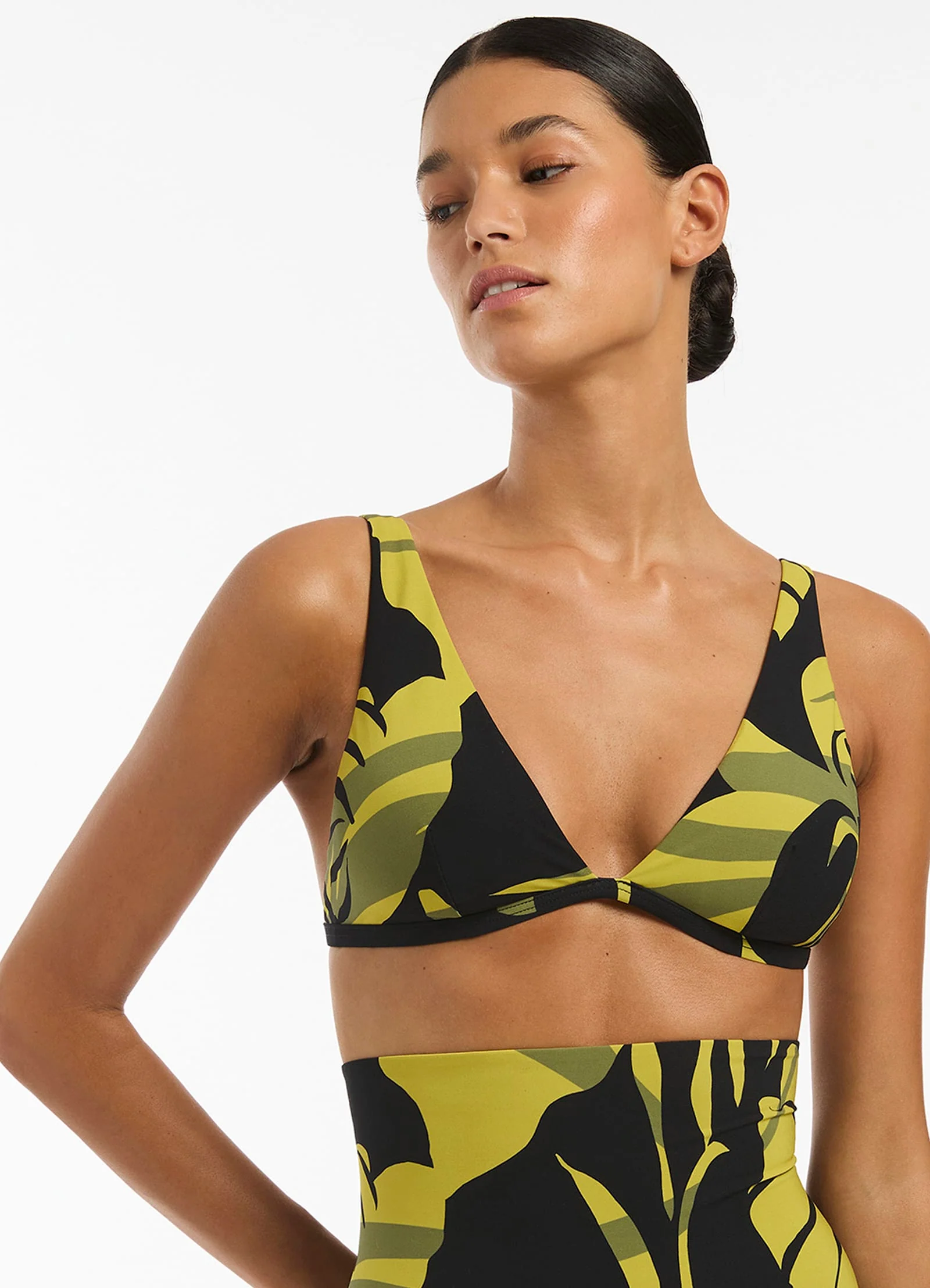 Jets Women’s Shadow Palm Longline Triangle Bikini Top – Black