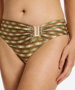 Jets Women’s Sorella Geo U Trim Mid Bikini Bottom – Moss