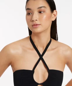 Be the first to review “Women’s Jetset Halter Gather Bikini Top – Black” Cancel reply