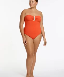 Women’s One Piece Swim Jetset Bandeau One Piece – Coral